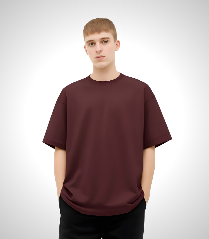 Maroon Oversized Plain T-Shirt – 240 GSM French Terry Cotton