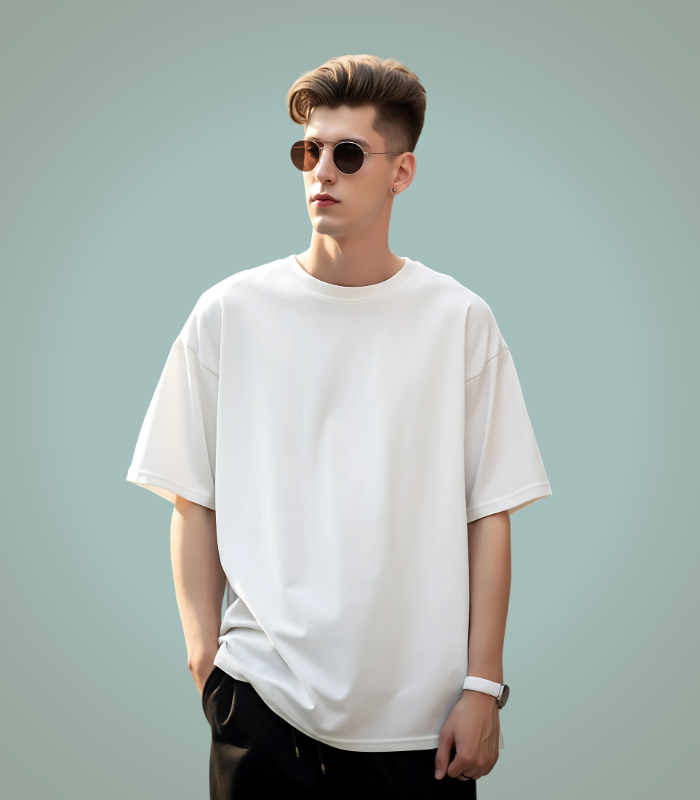 White Oversized Plain T-Shirt – 240 GSM French Terry Cotton