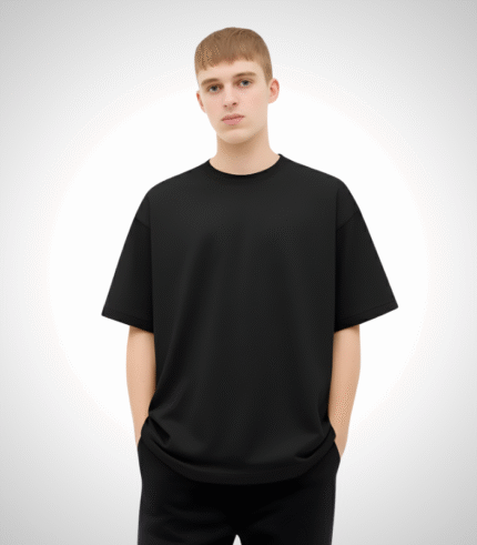 Black Oversized Plain T-Shirt – 240 GSM French Terry Cotton